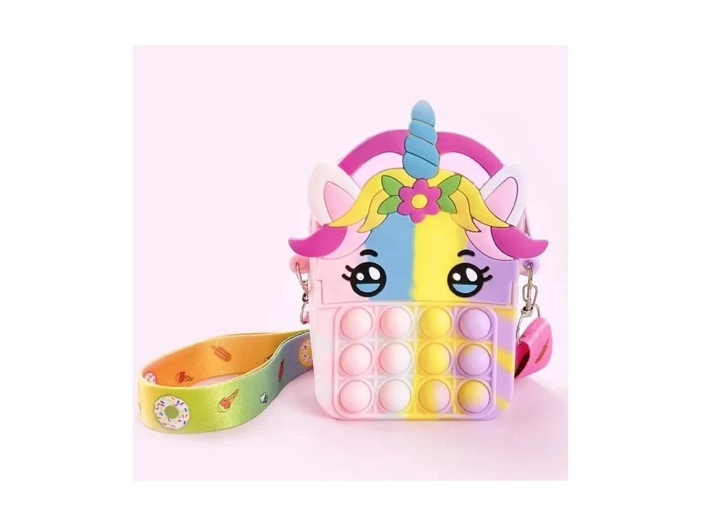 1x Praktická kabelka na detskú kameru s Pop It motívom jednorožca.